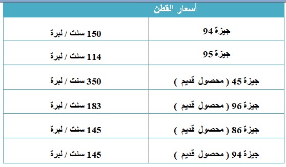 متوسط أسعار البيع للأقطان المصرية لموسم 2025/2026 خلال الفترة من 05/10/2025 حتى 11/10/2025 .