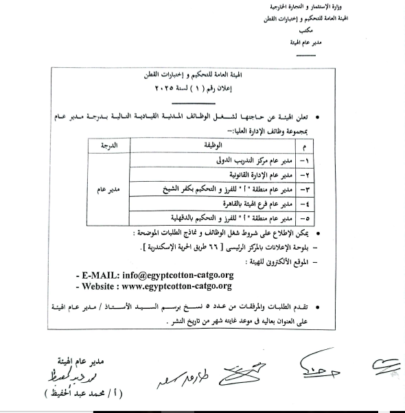 تعلن الإدارة المركزية للتدريب والتطوير ( مركز التدريب الدولى) عن عقد البرنامج التدريبى (تنشيطية فى فرز القطن)