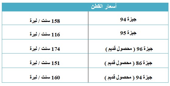 متوسط أسعار البيع للأقطان المصرية لموسم 2025/2026 خلال الفترة من 05/10/2025 حتى 11/10/2025 .